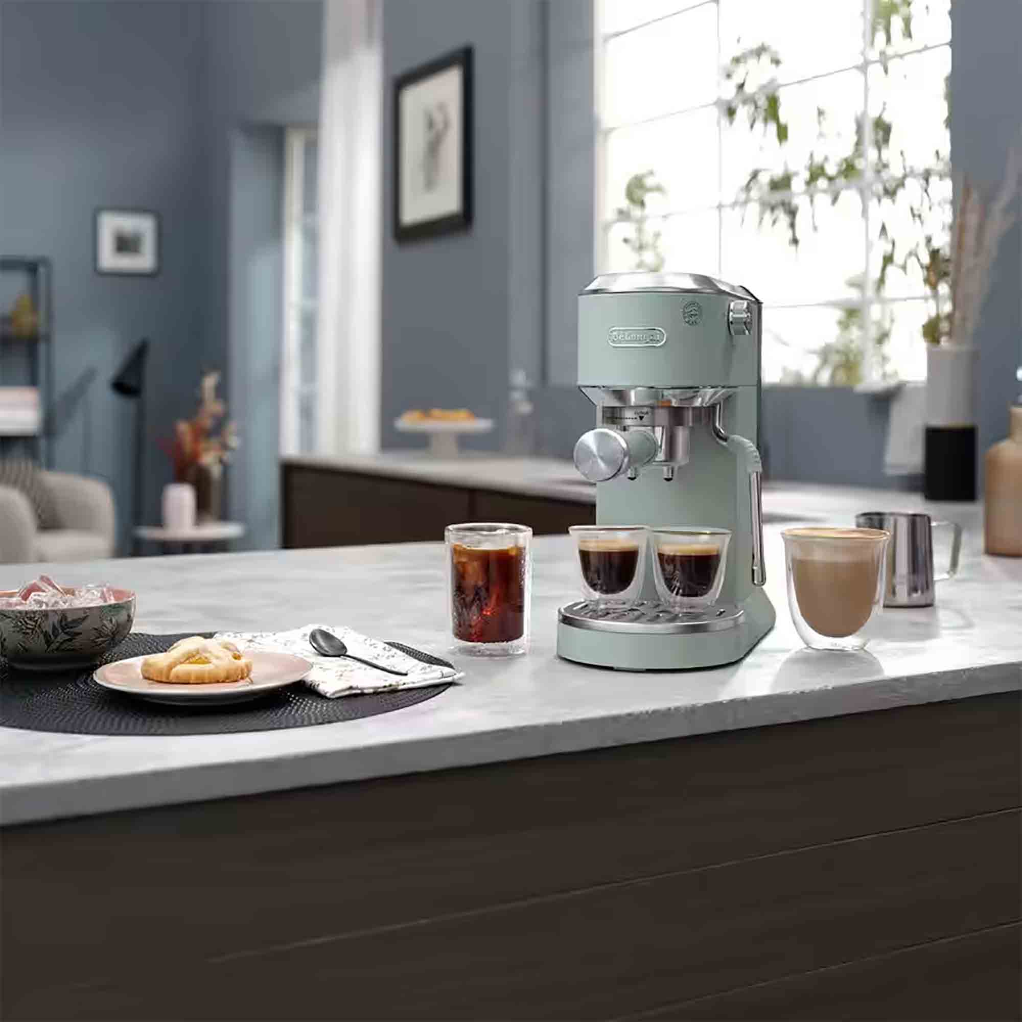 Buy the Delonghi EC890GR Dedica Duo Espresso Machine with Advanced Milk Steam Wand & Cold Brew Option in Green online today with FREE standard delivery.