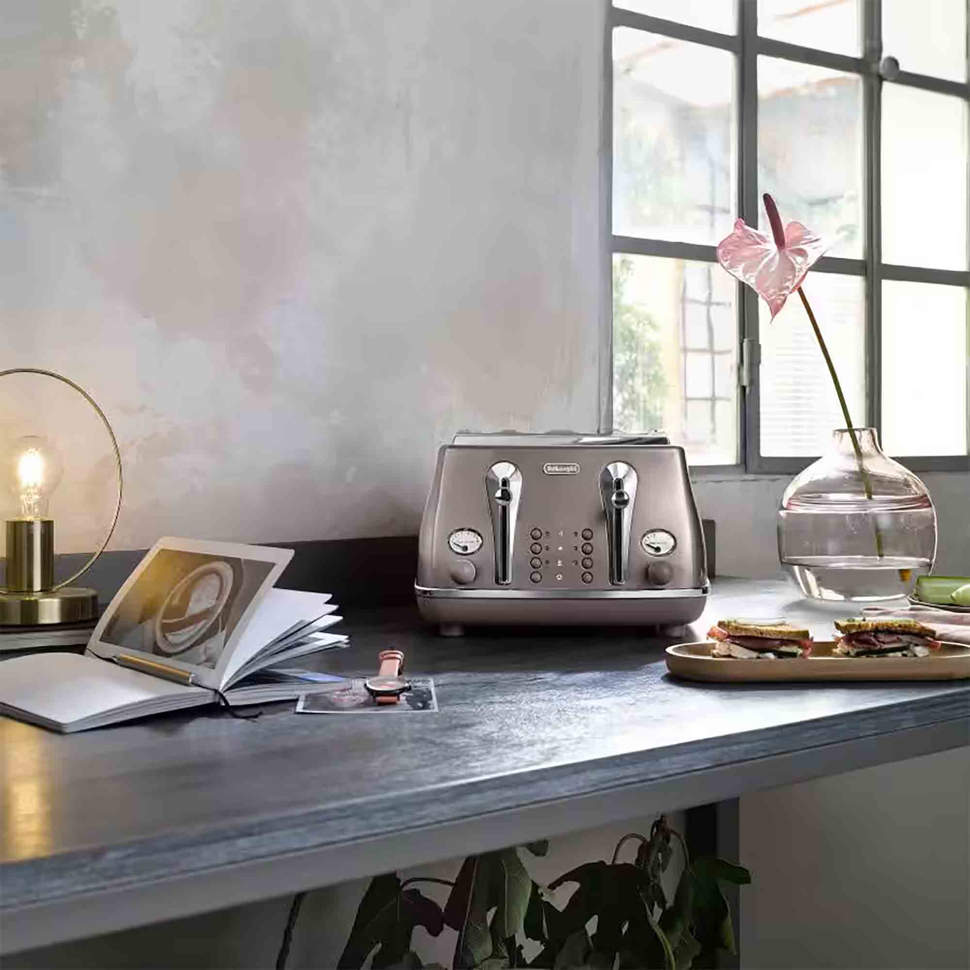 Delonghi Icona Metallics 4 Slice Toaster in Pink – CTOT4003PK