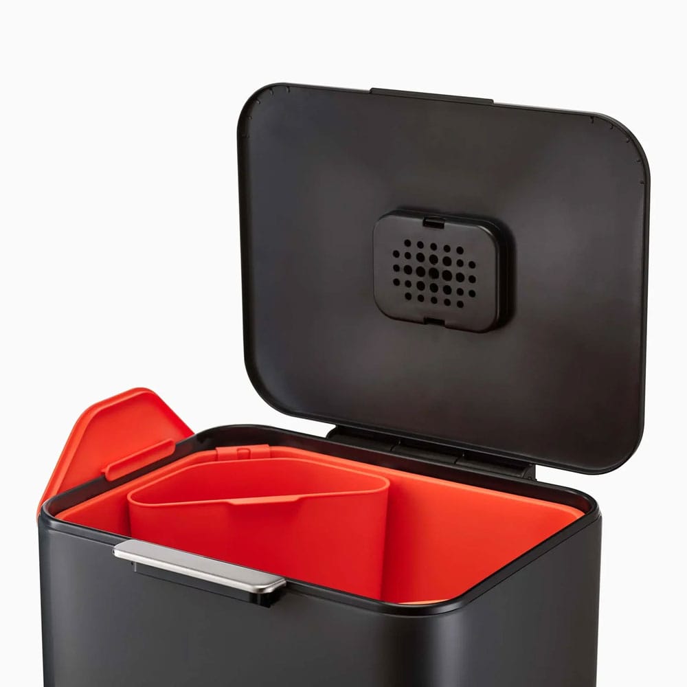 - Includes two 30-litre compartments for easier sorting of waste and recycling plus a 3-litre removable food waste caddy