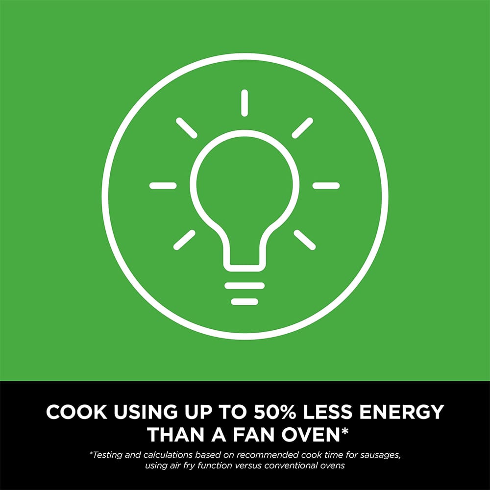 *Testing and calculations based on recommended cook time for sausages, using air fry function versus conventional ovens.