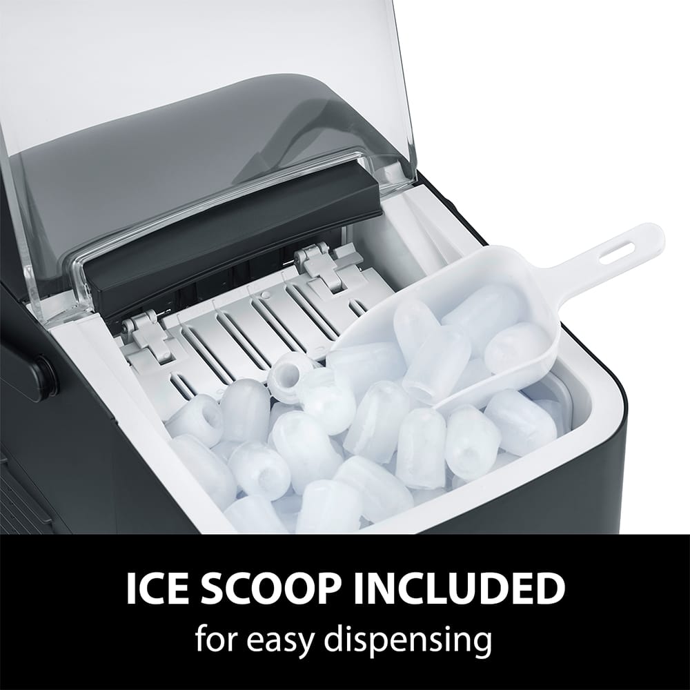 • Compact ice cube maker with carry handle & removable ice cube tray