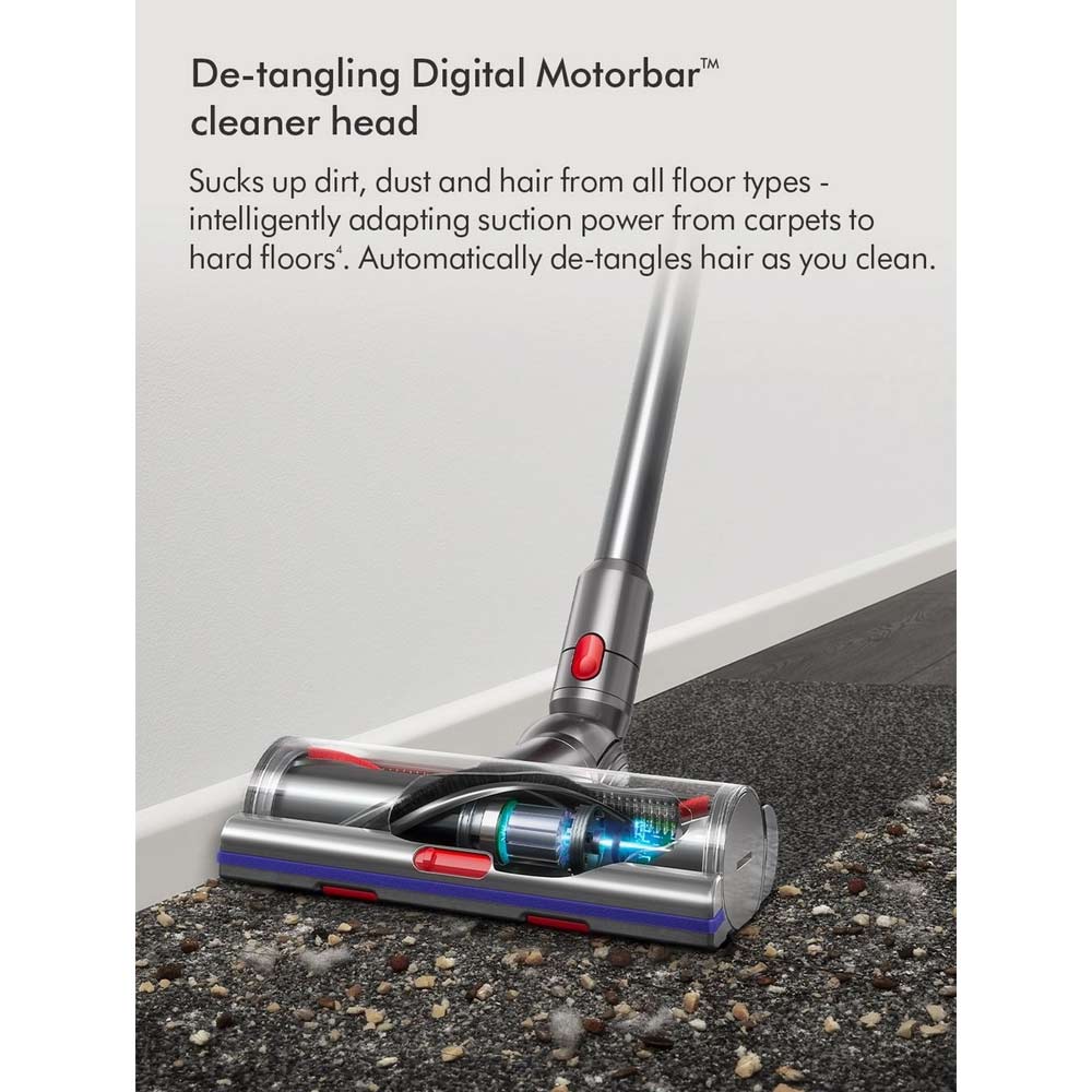 You’ll also find a Slim Optic Fluffy cleaner head with this model. The 25cm-wide attachment is engineered with soft nylon and anti-static carbon fibre filaments to remove dust from hard floors and narrow gaps. Plus, a precisely angled optic light detects the dust you cannot see on hard floors – so you don’t miss anything.